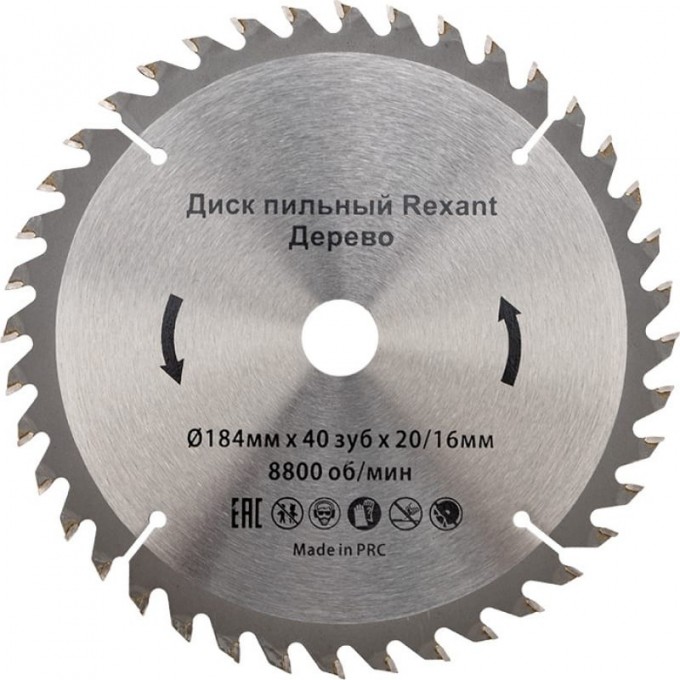 Диск пильный REXANT 184 мм х 40 зуб х 20/16 мм 92-0110
