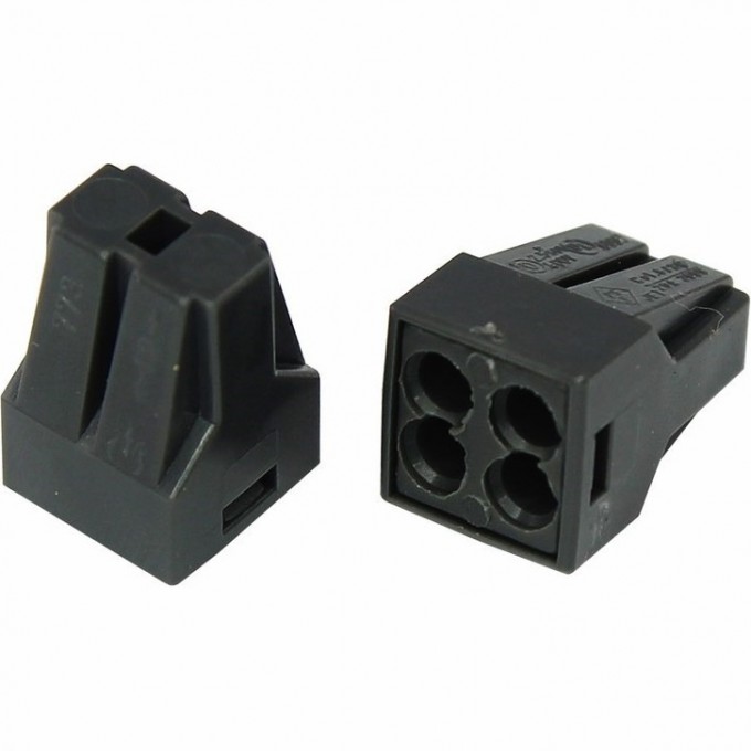 Электромонтажные экспресс-клеммы предназначены для соединения 4 проводов между собой (алюминиевые и медные как одножильные, так и многожильные). Подключение осуществляется способом проталкивания до упора очищенного от изоляции провода в свободное гнездо. Клеммы наполнены специальной контактной пастой, которая создает барьер для попадания влаги внутрь разъёма, а так же препятствует окислению проводников.