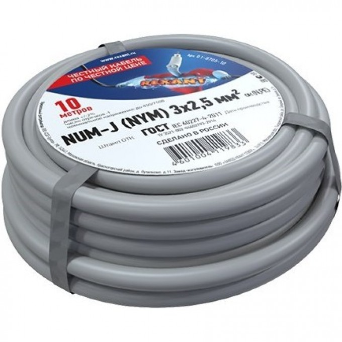 Кабель REXANT NUM-J 3x2.5 мм² силовой медный 10 м 01-8705-10
