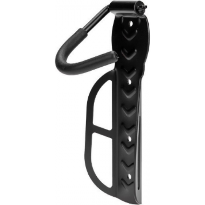 Изготовлен из высокопрочной стали: выдерживает нагрузку до 30 кг. Крюк покрыт ABS-пластиком для защиты обода от царапин. Угол поворота крюка составляет 180°, что позволяет размещать колеса разных размеров от 12 до 29 дюймов.