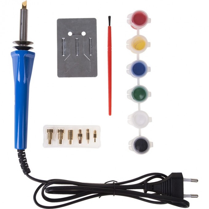Набор паяльник-выжигатель (6 насадок) 230 V/30 Вт + Краски REXANT – отличное решение для тех, кто стремится по максимуму использовать полезные приборы.
