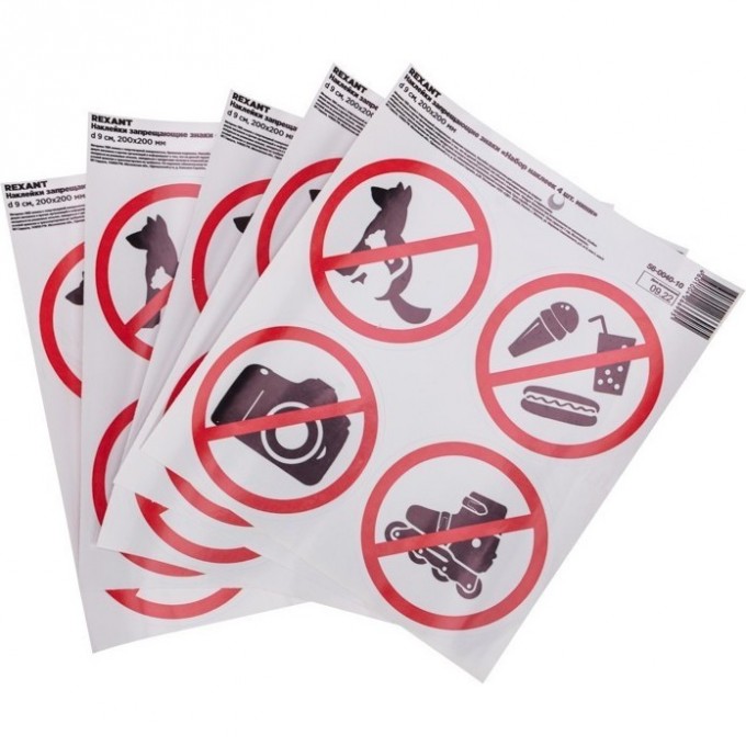 Набор запрещающих знаков состоит из 4 наклеек формата «мини» 10х10 сантиметров каждая.
