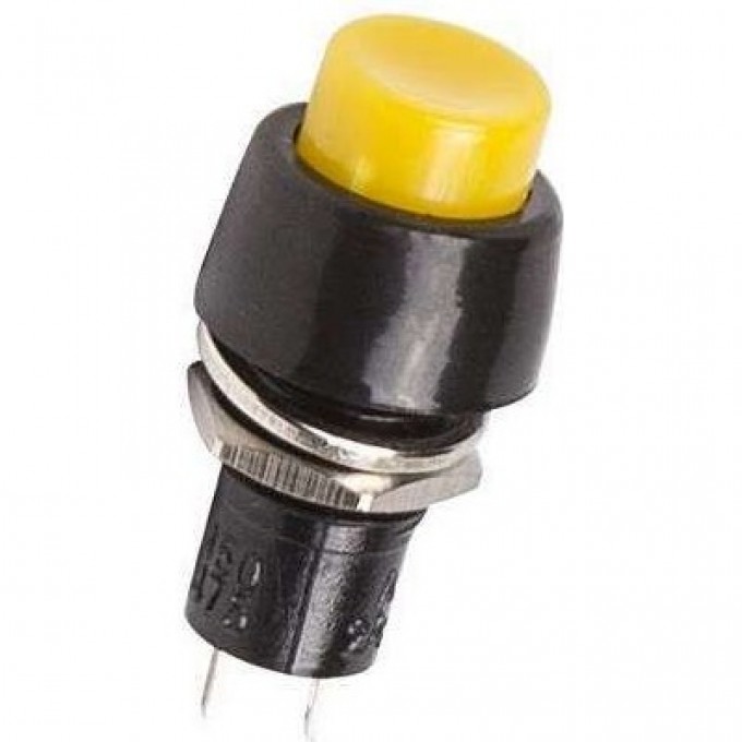 Выключатель-кнопка 250V 2А (2с) ON-OFF желтая предназначена для коммутации электрических цепей переменного тока напряжением до 250В, путем включения-выключения питающего провода. Кнопки применяются в качестве комплектующих изделий различного электрооборудования (в аудио системах, блоках питания, электроустановках на различных производствах, автомобилях, и многих других местах). Разнообразные цветовые варианты исполнения позволяют эффективно комплектовать панели управления. Изделие состоит из двух основных частей - лицевой части (головки) и контактной, и имеет пружинный возвратный механизм. Монтаж осуществляется без применения винтов на плоских панелях толщиной от 0.5мм до 3мм, с помощью гайки. Подключение контактов осуществляется с помощью пайки.