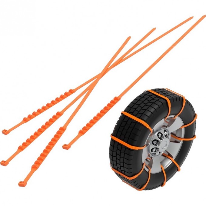 В отличие от классических решений, стяжки гораздо компактнее, меньше весят, не нуждаются в уходе и не нанесут вред автомобилю или окружающей среде. Также они отличаются простотой использования – любой пользователь справится с установкой хомутов. Необходимо лишь закрепить их по периметру колеса ребристой поверхностью наружу, обернув вокруг диска и шины.